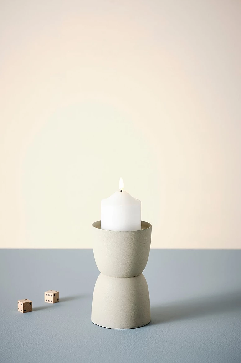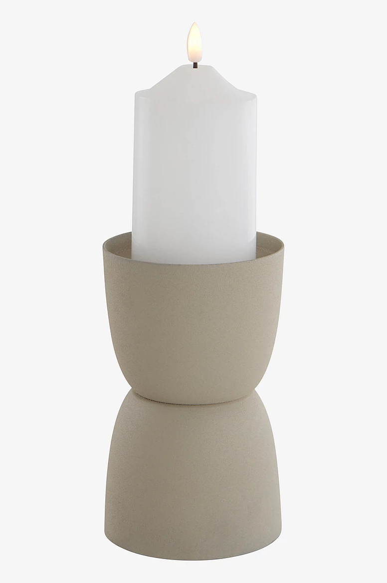 Járnkertastjaki með skemmtilegri áferð. Stílhreinn kertastjaki fyrir kubbakerti sem lýsir upp t.d. fallega borðskreytingu. Kerti fylgja ekki með.