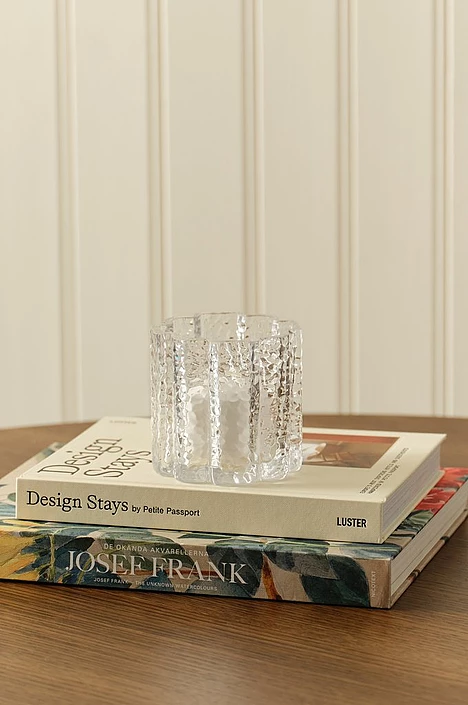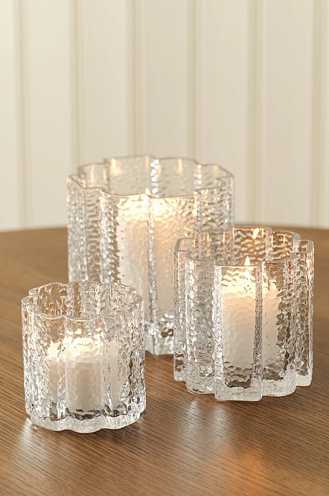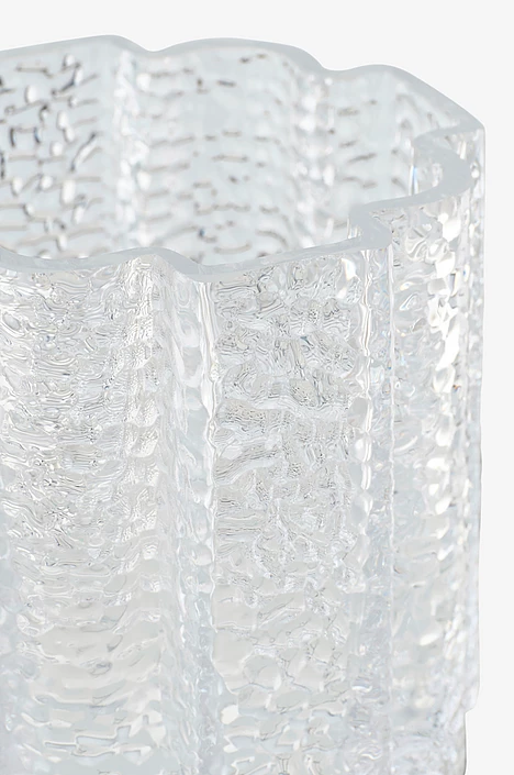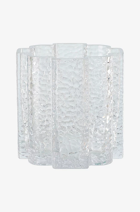 Eira er handgerður glerkertastjaki með bylgjulagaða hönnun. Hann er einnig til í 12 cm hæð og eru fallegir tveir saman eða í sitthvoru lagi.