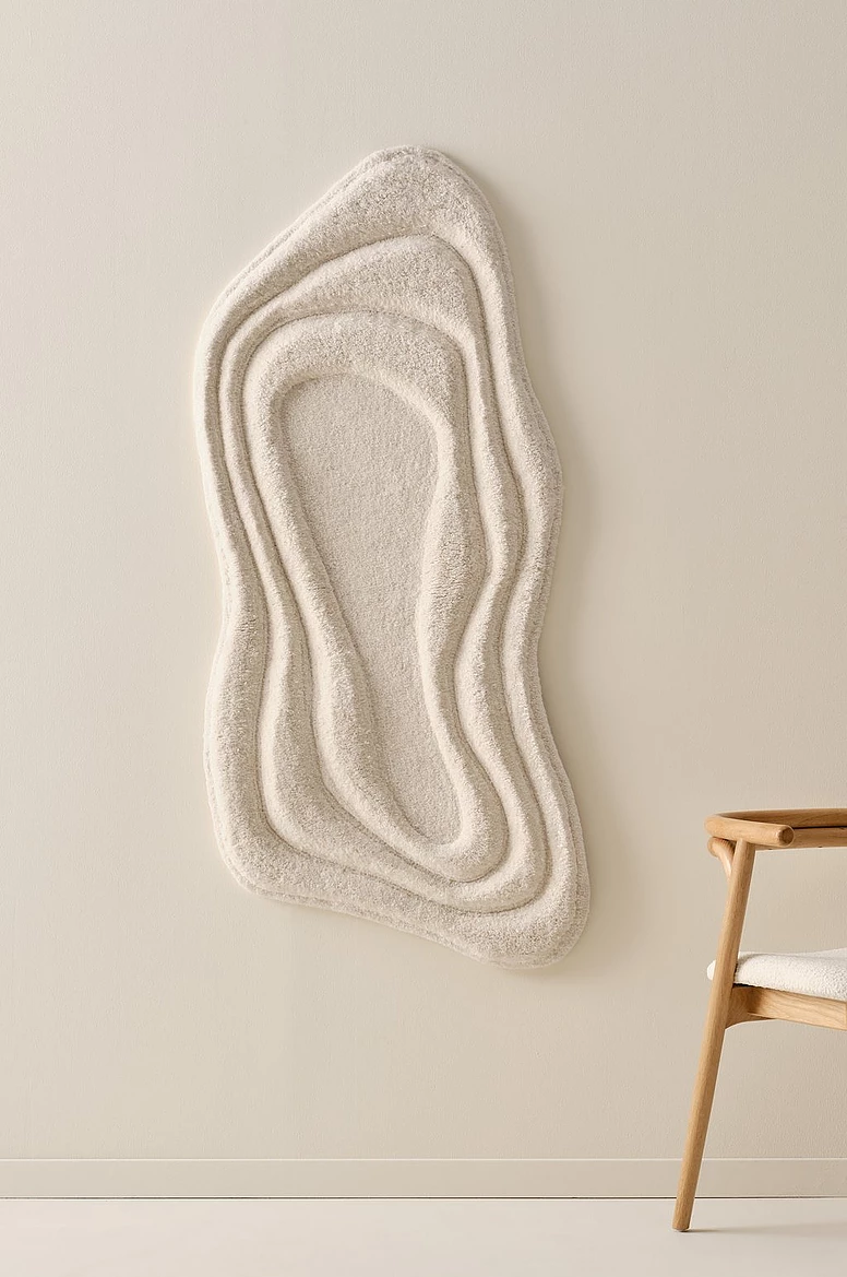 Fallega FLOWIE veggteppið bætir við listrænni stemningu á heimilið. Ullarmynstrið sýnir fallegt, lífrænt mynstur sem er bæði nútímalegt og aðlaðandi. Með sex litlum upphengjum að aftan er þetta fjölhæfa stykki auðvelt að hengja upp í hvaða átt sem er, sem hentar rýminu. Fullkomið fyrir þá sem leita að einstökum og glæsilegum innanhússhönnunarhlutum sem bæta persónuleika og hlýju við hvaða herbergi sem er.