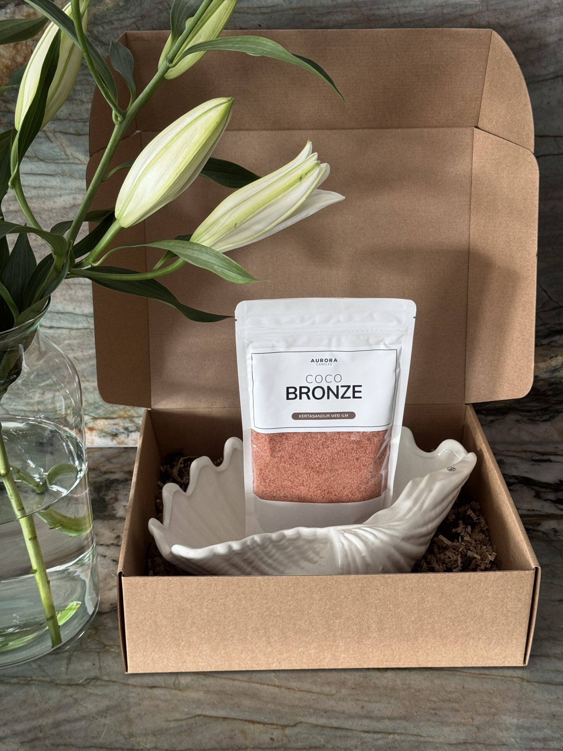 Hversu tilvalið er að kveikja á Kertasandinum frá HN Gallery í þessari fallegu skeljaskál frá Myrk Store & njóta haustsins.