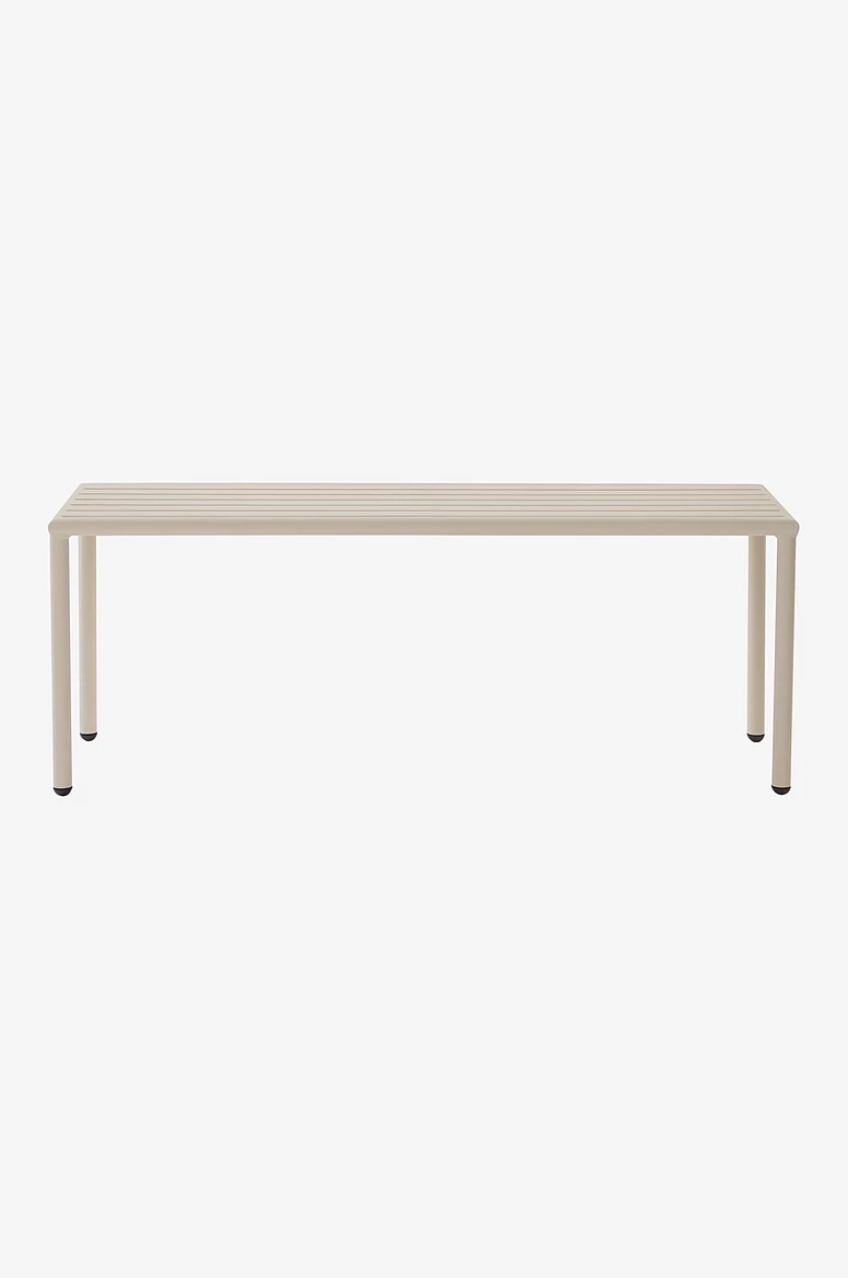 MENTON bekkurinn býður upp á glæsilega lausn fyrir hvaða umhverfi sem er. Minimalísk hönnun hans og sléttar línur skapa nútímalegt yfirbragð sem passar við fjölbreyttan innanhússstíl. Bekkurinn er tilvalinn bæði til notkunar innandyra og utandyra og mun fegra stofuna eða garðinn með því að bjóða upp á þægindi og sjónrænt aðdráttarafl. Frábært að geta bætt við sætum úti sem inni þegar halda á veislu. Fullkominn fyrir þá sem vilja uppfæra rýmið sitt með nútímalegri hönnun og einfaldleika.