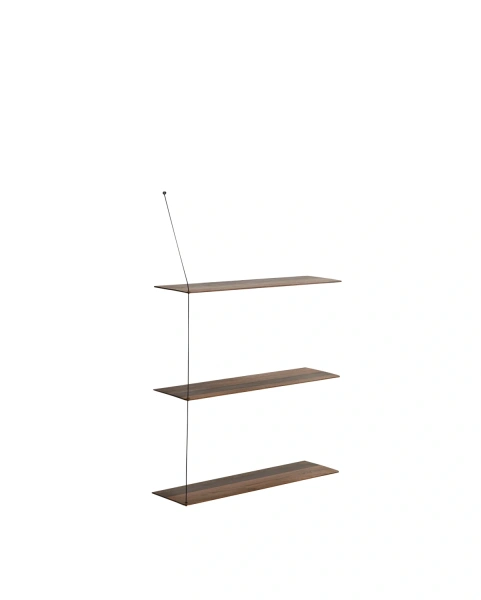 Fíngerða hönnunin er sjónblekking þar sem hillurnar virðast hanga á einum þræði.