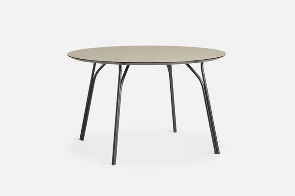 Fallegt borð með málmfætur sem grípa eins og greinar á tré og gera Tree borðið að flottri og grafískri hönnun. Hver fótur er gerður úr tveimur málmrörum sem rísa fyrst hlið við hlið áður en leið þeirra skilur að til að styðja við borðplötuna. Hringlaga lögun borðsins býður upp á notalegar stundir með fjölskyldu og vinum. Nano laminate er þunnt, mjög slitsterkt lag sem er framleitt með nanótækni. Helstu eiginleikar borðplötunnar eru að hún þolir daglega notkun mjög vel, fingraför sjást lítið sem ekkert, ultra mött áferð, auðveld að þrífa og frekar rispuþolin.
